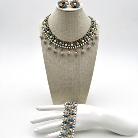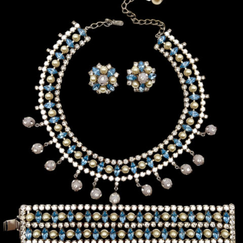 Coppola & Toppo 1960s Blue Earrings, with rhinestones and glass beads.